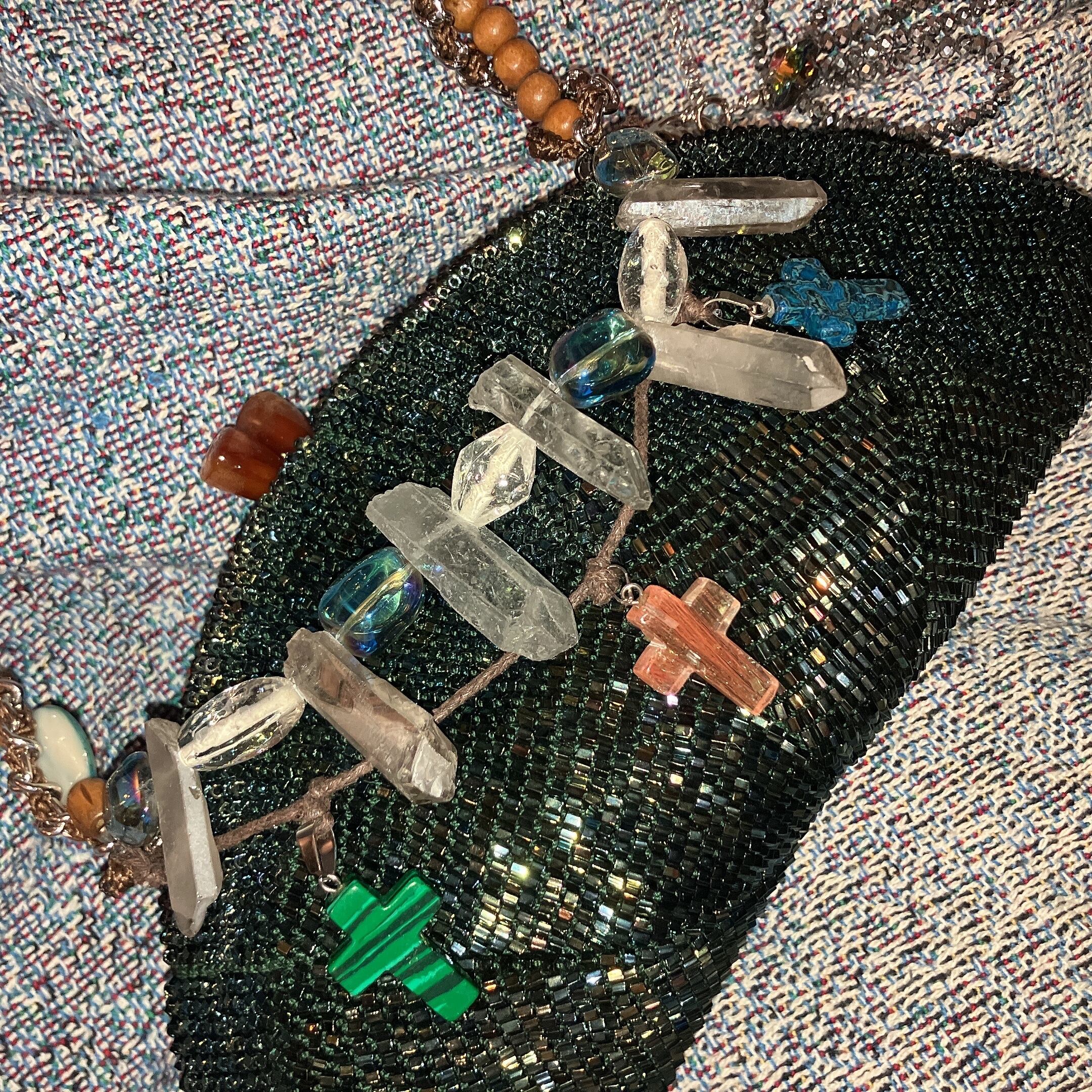 本体〜ストラップ:ガラスビーズ、ウッド、天然石、ステンレス、プラ